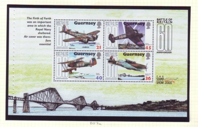Guernsey Scott Catalogue number 717b 2000 60th Anniversary Battle of Britain stamp booklet pane, 21,36, 40 & 45p values