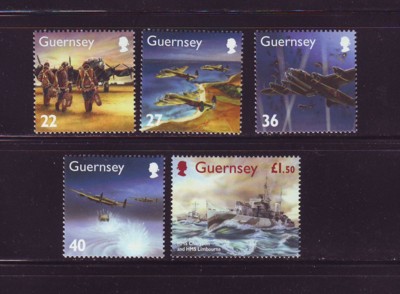 Guernsey Scott Catalogue number 790-794 2003 World War II events stamp set .