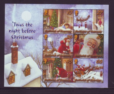 Guernsey Scott Catalogue number 815a 2003 Christmas stamp souvenir sheet .Mint, fine to very fine, original gum never hinged .Member Canadian Stamp Dealers AssociationFree shipping on purchases over $50 going to North America .Canadian Customers - I pay the GST/HSt on your purchases from me .