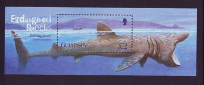Guernsey Scott Catalogue number 874 2005 Basking Shark stamp souvenir sheet .