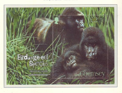 Guernsey Scott Catalogue number 952 2007 Mountain Gorillas stamp souvenir sheet .Mint, fine to very fine, original gum never hinged .Member Canadian Stamp Dealers AssociationCanadian Customers - No added GST/HST .US customers - There is no tariff on postage stamps that I send to you.