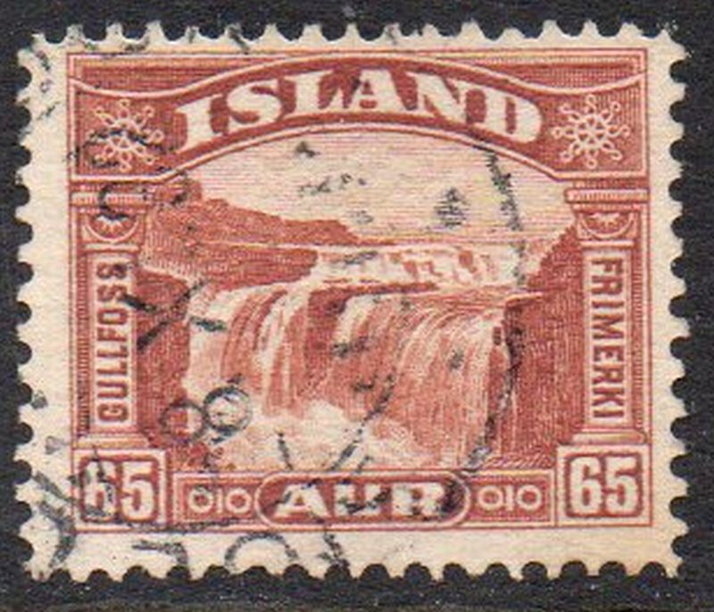 Iceland Scott Catalogue number 174 1932 65 aur red brown Golden Falls stamp.Used, fine .Canadian Customers - No added GST/HST on your purchases from me .26-1-7.jpg