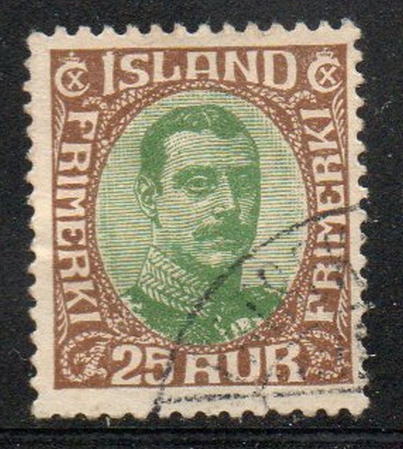 Iceland Scott Catalogue number 182 1931 25 aur brown & green Christian X stamp.Used, fine.Member Canadian Stamp Dealers Association .Canadian Customers - I pay the GST/HST on your purchases from me .25-2-109.jpg