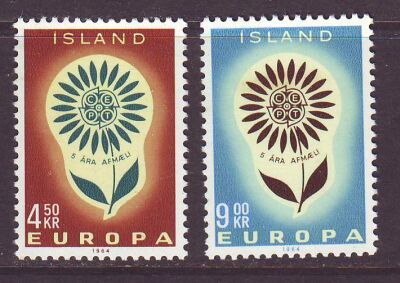Iceland Scott Catalogue number 367-368 1964 Europa stamp set .Mint, fine to very fine, original gum never hinged . Member Canadian Stamp Dealers Association . Canadian Customers - I pay the GST/HST on your purchases from me .