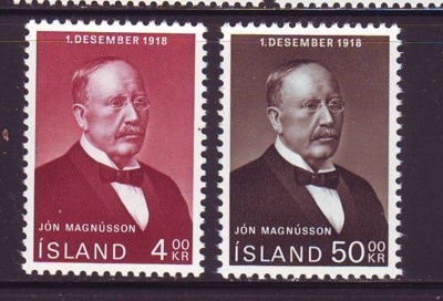Iceland Scott Catalogue number 402-403 1968 50th Anniversary of Independence stamp set .
