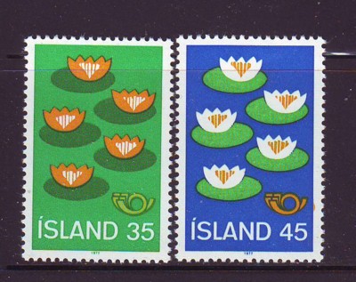 Iceland Scott Catalogue number 496-497 1977 Nordic Cooperation 5 Water Lilies stamp set .Mint, fine to very fine, original gum never hinged.Member Canadian Stamp Dealers Association .Free Shipping on purchases over $50 going to North America.Canadian Customers - I pay the GST/HST on your purchases from me .