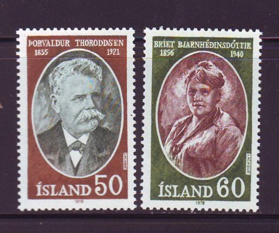 Iceland Scott Catalogue number 504-05 1977 Thoroddson & Bjarnhedinsdottir stamp set