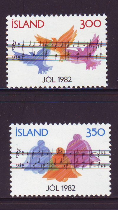 Iceland Scott Catalogue number 565-566 1982 Christmas stamp set .