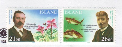 Iceland Scott Catalogue number 682-683 1989 100th Anniversary Natural History Society stamp set .