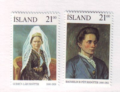 Iceland Scott Catalogue number 696-697 1990 Famous Women stamp set .Mint, fine to very fine, original gum never hinged . Member Canadian Stamp Dealers Association . Canadian Customers - I pay the GST/HST on your purchases from me .