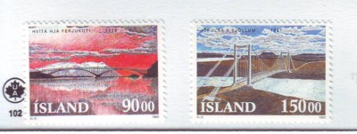 Iceland Scott Catalogue number 766-767 1993 Bridges stamp set .Mint, fine to very fine original gum never hinged ,Member Canadian Stamp Dealers Association .Canadian Customers - I pay the GST/HST on your purchases from me .