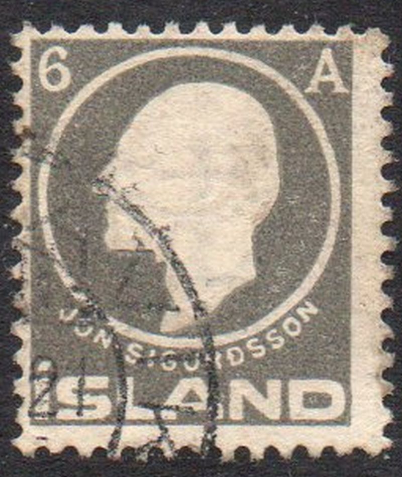 Iceland Scott Catalogue number 89 1911 6 aur gray Sigurdsson stamp.Used, very good to fine .Canadian Customers - No added GST/HST on your purchases from me .26-1-4.jpg