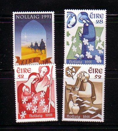 Ireland Scott Catalogue number 848-851 1991 Christmas stamp set . Mint, fine to very fine, original gum never hinged.Member Canadian Stamp Dealers Association .Free Shipping on purchases over $50 going to North America.Canadian Customers - I pay the GST/HST on your purchases from me .