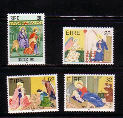 Ireland Scott Catalogue number 909-912 1993 Christmas stamp set. Mint, fine to very fine, original gum never hinged.Member Canadian Stamp Dealers Association .Free Shipping on purchases over $50 going to North America.Canadian Customers - I pay the GST/HST on your purchases from me .