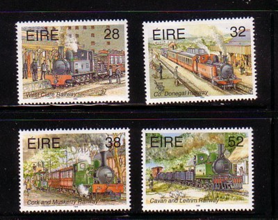 Ireland Scott Catalogue number 956-959 1995 Narrow Guage Railways stamp set. Mint, fine to very fine, original gum never hinged.Member Canadian Stamp Dealers Association .Free Shipping on purchases over $50 going to North America.Canadian Customers - I pay the GST/HST on your purchases from me .