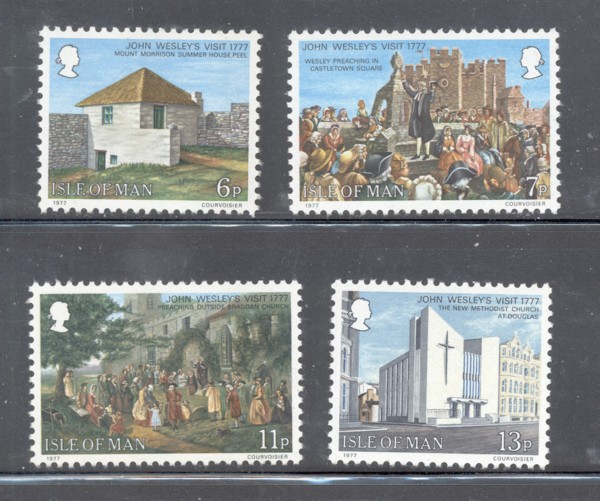 Isle of Man Scott Catalogue number 105-108 1977 200th Anniversary 1st Visit by John Wesley stamp set .