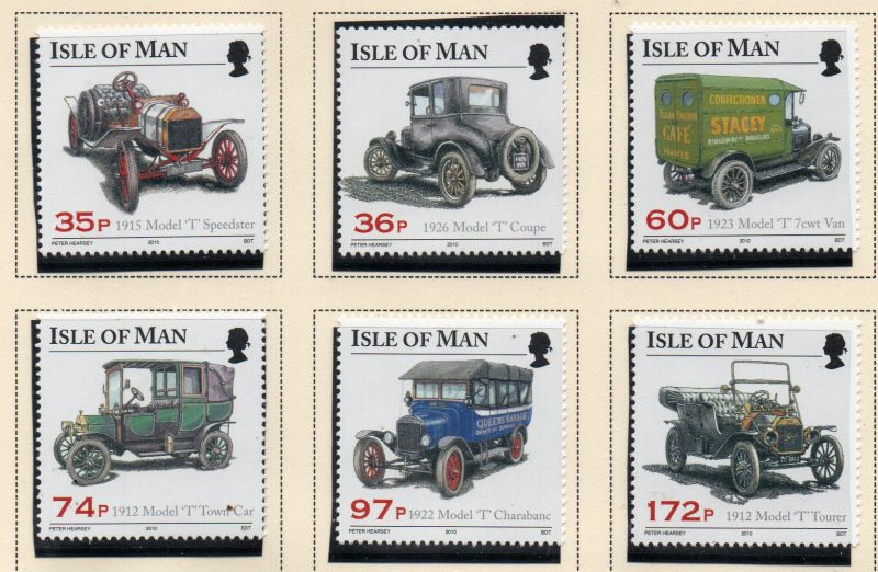 Isle of Man Scott Catalogue number 1375-1380 2010 Model T Fords stamp set .