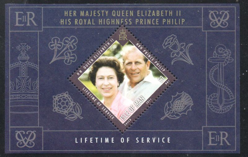 Isle of Man Scott Catalogue number 1414 2011  £3 Service of QE II & Prince Philip stamp  souvenir sheet .Mint, fine to very fine, original gum never hinged.Canadian Customers - no added GST/HSTUS customers - No tariffs on stamps sent by meMember Canadian Stamp Dealers Association