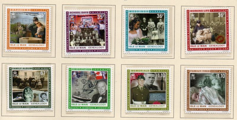 Isle of Man Scott Catalogue number 1415-1422 2011 Genealogy stamp set .