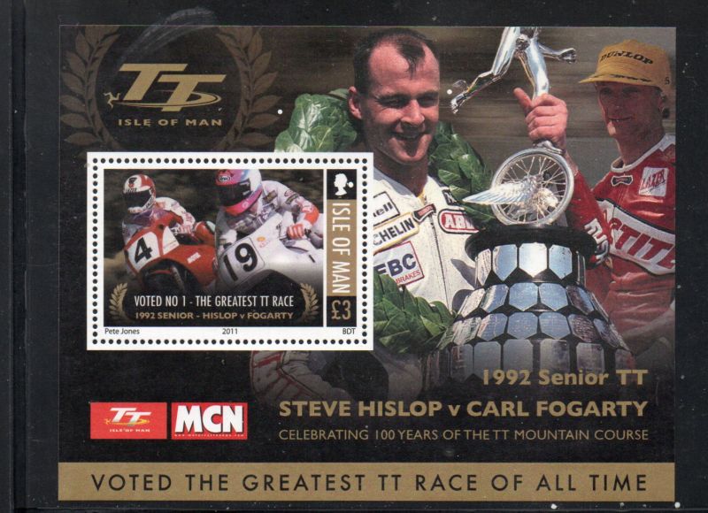 Isle of Man Scott Catalogue number 1425 2011 2011 Greatest TT Motorcycle Races stamp souvenir sheet.
