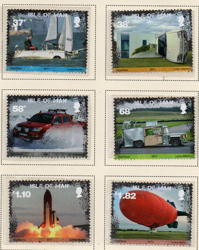 Isle of Man Scott Catalogue number 1463-1468 2011 Top Gear Transportation Creations stamp set.