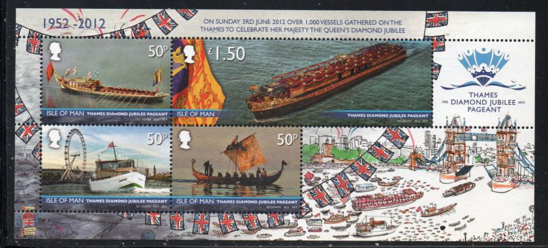 Isle of Man Scott Catalogue number 1505 2012 Thames Diamond Jubilee Pageant stamp souvenir sheet .