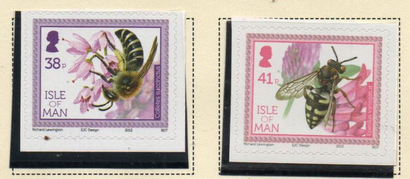 Isle of Man Scott Catalogue number 1519-1520 2012 Bees self adhesive stamp set .Mint, fine to very fine, original gum never hinged.Canadian Customers - no added GST/HSTUS customers - No tariffs on stamps sent by meMember Canadian Stamp Dealers Association