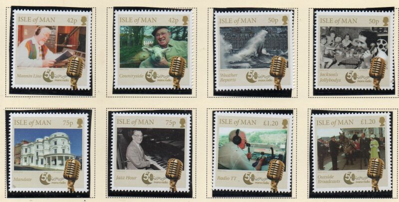 Isle of Man Scott Catalogue number 1672-1679 2014 50th Anniversary Manx Radio stamp set .Mint, fine to very fine original gum never hinged .Canadian Customers - no added GST/HSTUS customers - No tariffs on stamps sent by meMember Canadian Stamp Dealers Association