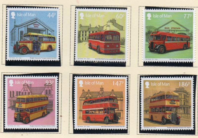 Isle of Man Scott Catalogue number 1746-1751 2015 Buses stamp set .Mint, fine to very fine original gum never hinged .Canadian Customers - no added GST/HSTUS customers - No tariffs on stamps sent by meMember Canadian Stamp Dealers Association