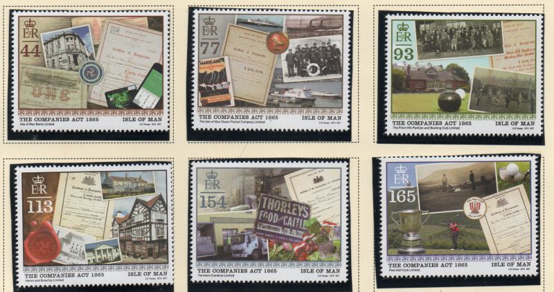 Isle of Man Scott Catalogue number 1752-1757 2015 150th Anniversary Companies Act stamp set .