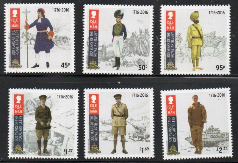 Isle of Man Scott Catalogue number 1789-1794 2016 300th Anniversary Royal Artillery stamp set .
