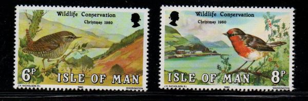 Isle of Man Scott Catalogue number 182-183 1980 Christmas & Wildlife Conservation stamp set .Mint, fine to very fine original gum never hinged .Canadian Customers - I pay the GST/HST for you