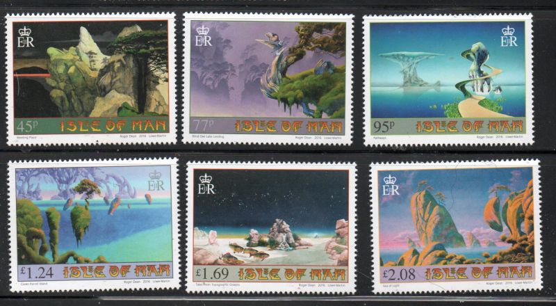 Isle of Man Scott Catalogue number 1824-1829 2016 Art of Roger Dean stamp set .Mint, fine to very fine, original gum never hinged .Canadian Customers - no added GST/HSTUS customers - No tariffs on stamps sent by meMember Canadian Stamp Dealers Association