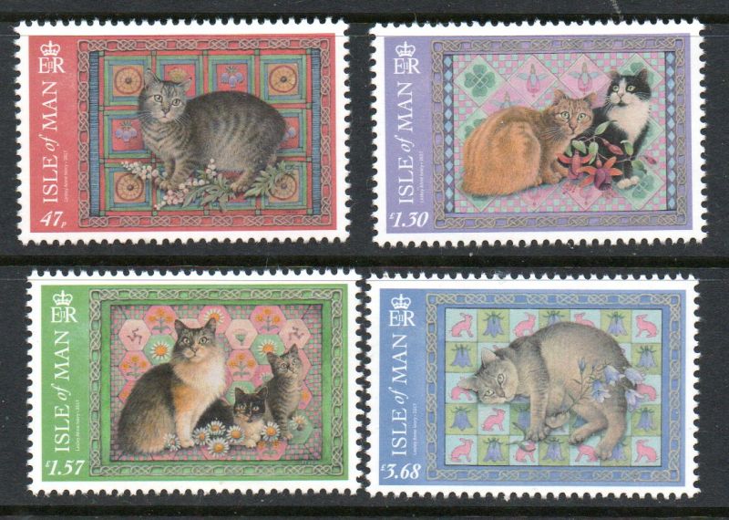 Isle of Man Scott Catalogue number 1900-1903 2017 Paintings of Manx Cats by Ivory stamp set .