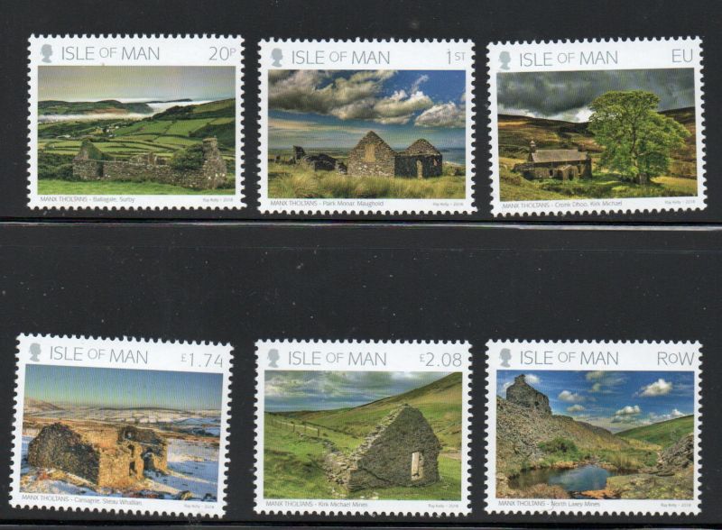 Isle of Man Scott Catalogue number 1906-1911 2018 Tholtans ( Abandoned Structures) stamp set .Mint, fine to very fine, original gum never hinged .Canadian Customers - no added GST/HSTUS customers - No tariffs on stamps sent by meMember Canadian Stamp Dealers Association