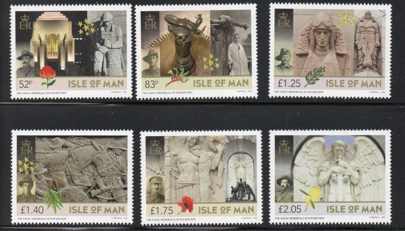 Isle of Man Scott Catalogue number 1964-1969 2018  ANZAC Memorial stamp set .Mint, fine to very fine, original gum never hinged .Canadian Customers - no added GST/HSTUS customers - No tariffs on stamps sent by meMember Canadian Stamp Dealers Association