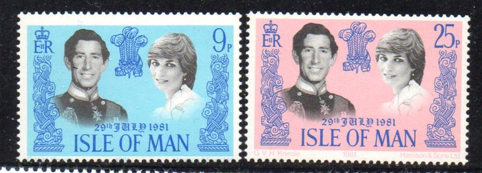 Isle of Man Scott Catalogue number 198-199 1981 Royal Wedding Prince Charles & Diana stamp set .Mint, fine to very fine original gum never hinged .Canadian Customers - I pay the GST/HST for you