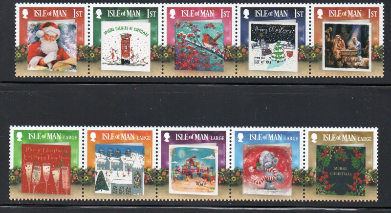 Isle of Man Scott Catalogue number 2067-2068 2019 Christmas stamp set in strips of 5.