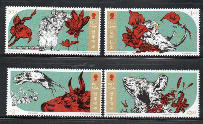Isle of Man Scott Catalogue number 2069-2072 2020 Year of the Rat stamp set .