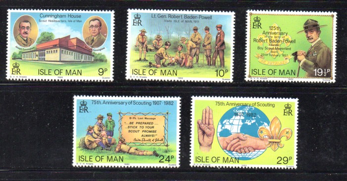 Isle of Man Scott Catalogue number 207-211 1982 Scouting Year stamp set .Mint, fine to very fine, original gum never hinged .Canadian Customers - I pay the GST/HST for you