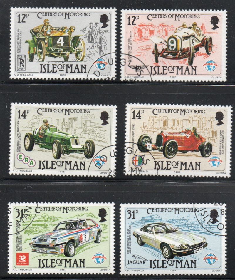 Isle of Man Scott Catalogue number 284-286 1985 Motor Races & Winning Cars stamp set .Used, fine to very fine.Member Canadian Stamp Dealers Association .Canadian Customers - I pay the GST/HST on your purchases from me .