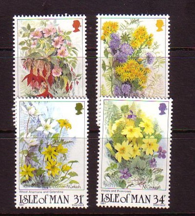 Isle of Man Scott Catalogue number 340-343 1987 Flowers stamp set .Mint, fine to very fine, original gum never hinged .Canadian Customers - I pay the GST/HST for you