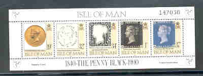 Isle of Man Scott Catalogue number 422 1990 150th Anniversary Penny Black stamp souvenir sheet .Mint, fine to very fine, original gum never hinged .Canadian Customers - I pay the GST/HST for you
