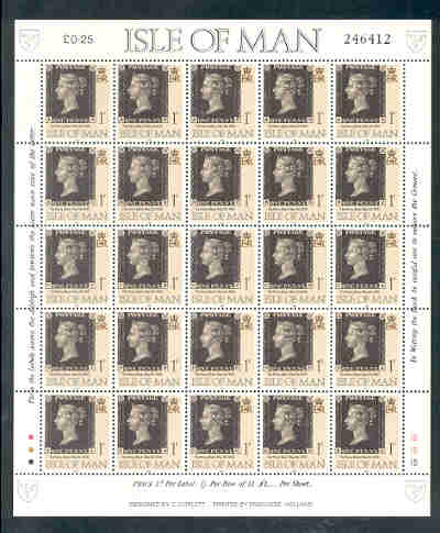 Isle of Man  Scott Catalogue number 423 1990 Penny Black stamp souvenir sheet  .Mint, fine to very fine, original gum never hinged .Member Canadian Stamp Dealers Association . Free Shipping on purchases over $50 going to North America . Canadian Customers - I pay the GST/HST on your purchases from me