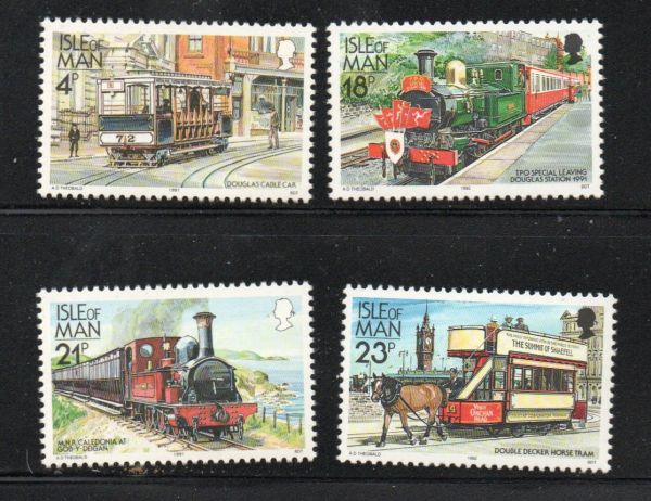 Isle of Man Scott Catalogue number 448-459 (4 v.) 1991-92 Trolleys & Steam Engines stamp set .