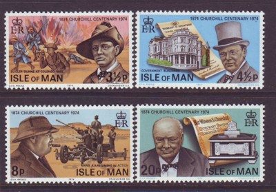 Isle of Man Scott Catalogue number 48-51 1974 100th Anniversary Birth of Churchill stamp set .