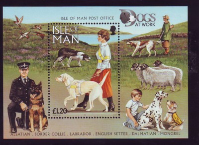 Isle of Man Scott Catalogue number  722 1996  Dogs stamp sheet .Mint, fine to very fine, original gum never hinged .Member Canadian Stamp Dealers Association .Free Shipping on purchases over $50 going to North America .Canadian Customers - I pay the GST/HST on your purchases from me .
