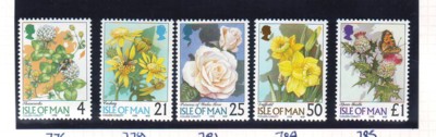 Isle of Man Scott Catalogue number 766-770 1998 Flowers stamp set .