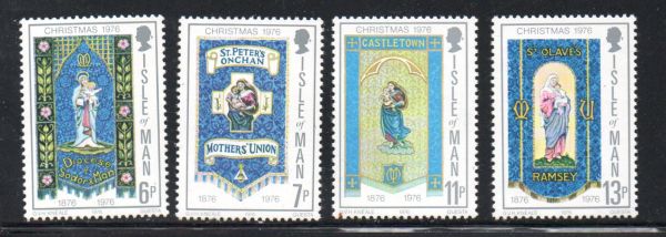Isle of Man  Scott Catalogue number  92-95 1976 Christmas stamp set  .Mint, fine to very fine, original gum never hinged .Member Canadian Stamp Dealers Association . Free Shipping on purchases over $50 going to North America . Canadian Customers - I pay the GST/HST on your purchases from me