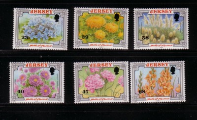 Jersey Scott Catalogue number 1042-1047  2002 100th Anniversary Battle of Flowers stamp set .Mint, fine to very fine, original gum never hinged.Member Canadian Stamp Dealers Association .Free Shipping on purchases over $50 going to North America.Canadian Customers - I pay the GST/HST on your purchases from me .